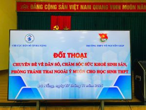 Thực hiện Kế hoạch số 214/KH-CCDS ngày 17/10/2025 của Chi cục Dân số thành phố Đà Nẵng và Công văn số 215/CCDS-DSPT, ngày 27/11/2025 Trường THPT Võ Nguyên Giáp đã phối hợp với Chi cục Dân số triển khai các hoạt động truyền thông nâng cao chất lượng dân số, sức khỏe sinh sản cho học sinh toàn trường.